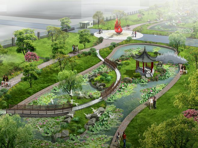 圖為荷花池園林景觀效果圖