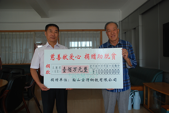 9月1日,《中華人民共和國慈善法》正式頒布實施的當天下午,鞍山寶得鋼鐵公司的一位代表風塵仆仆來到市慈善總會,捐出專項善款100萬元,并轉(zhuǎn)達了寶得公司董事長張永全的話:“我要兌現(xiàn)承諾,只要企業(yè)經(jīng)濟效益好了,只要我們還有這個能力,就要繼續(xù)獻愛心,就要幫助那些有困難的人。”